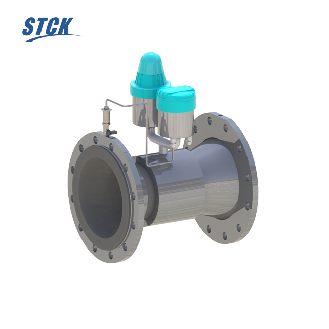管道式超聲波流量計應用超聲傳輸時間的方法測量流速,無運動部件。超聲波在測量管道內以水流方向傳輸再被返回,通過測得的兩束超聲波的時間差計算出流速。